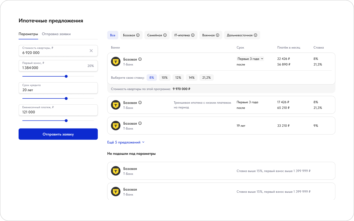 Геймификация подбора ипотеки. Ипотечный калькулятор не только предоставляет полезную информацию, но и значительно улучшает общий пользовательский опыт на сайте. Как показывает практика, клиентам важно не только видеть подходящие предложения, но и понимать, почему другие им не доступны. Именно поэтому мы не скрываем неподходящие варианты, а указываем причины отказа.